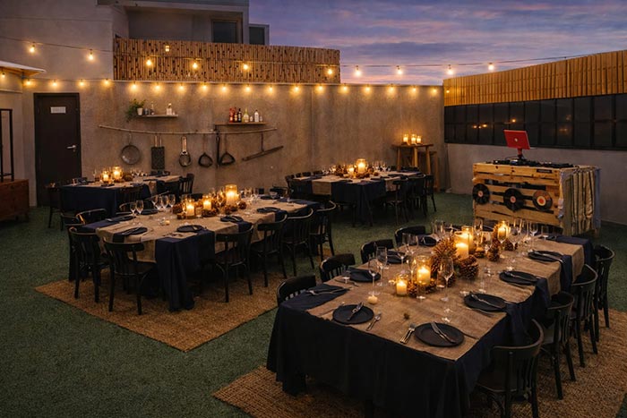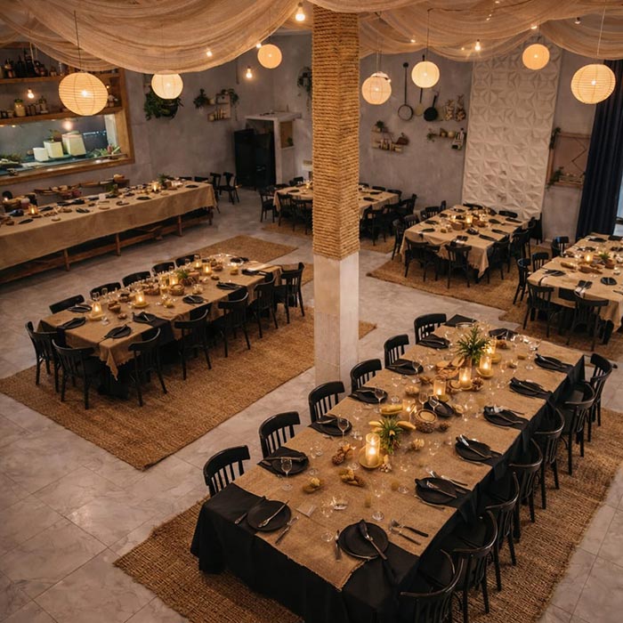 המתחם מיועד לאירוע שלכם בלבד – החל מ־30 ועד 150 מוזמנים – עם מרחב אינטימי, עוצמתי ומוקפד, בלי סועדים זרים או חדר VIP צפוף. למתחם חצר המשתרעת על כ־200 מ"ר, המשלבת אווירה אורבנית עוטפת וחמימה, ומוסיפה רובד ייחודי לחוויית האירוע. העיצוב חם וירושלמי, עם חומרים טבעיים, תאורה רכה וטקסטורות שמעניקות תחושה אורבנית־שיקית מדויקת.