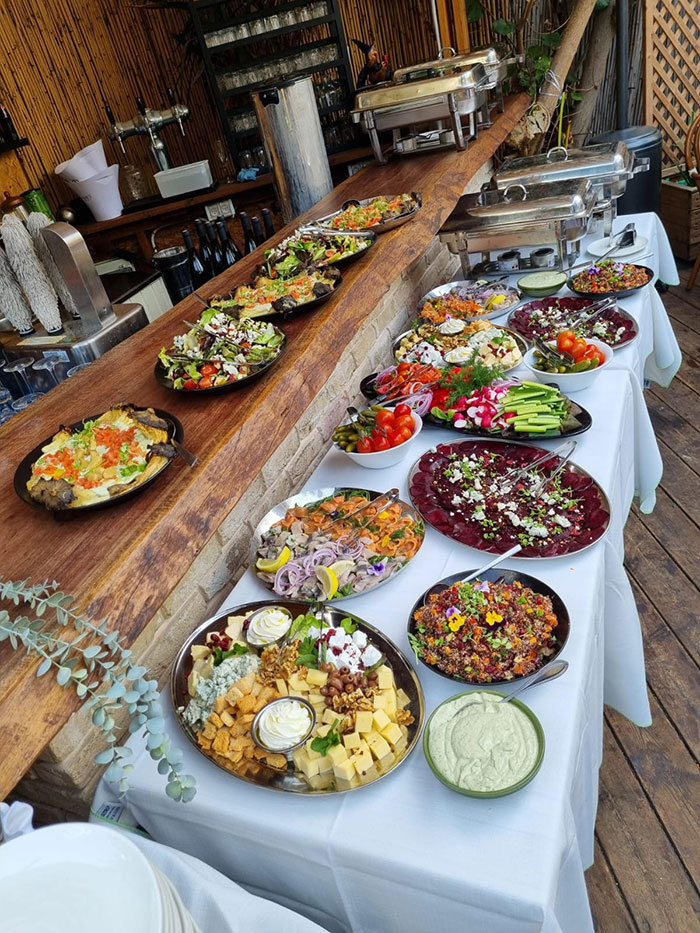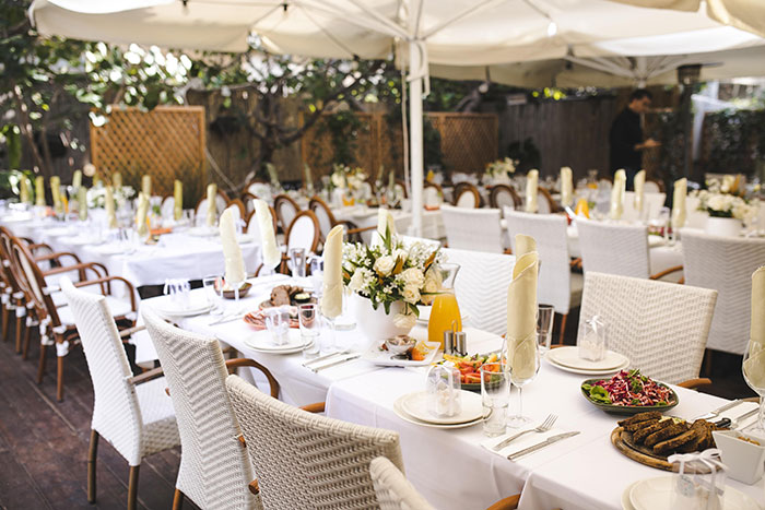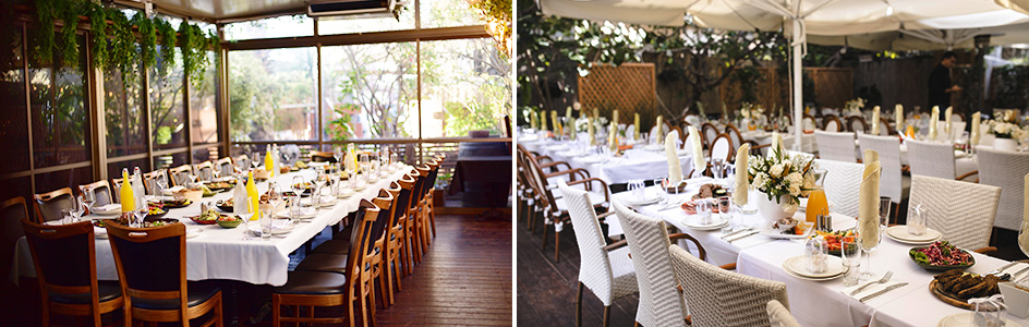 צוות המסעדה יפיק ביחד איתכם את האירוע עליו תמיד חלמתם וידאג לכל הפרטים, כדי שאתם תוכלו להיות נוכחים באופן מלא באירוע שלכם. במתחם המסעדה 2 אולמות פרטיים המשקיפים לגן לאירועים אינטימיים עד 60 אורחים, גן מעוצב וקסום לאירועים באווירה כפרית עד 100 אורחים, וכן אפשרות לערוך אירועים גדולים עד 150 אורחים.