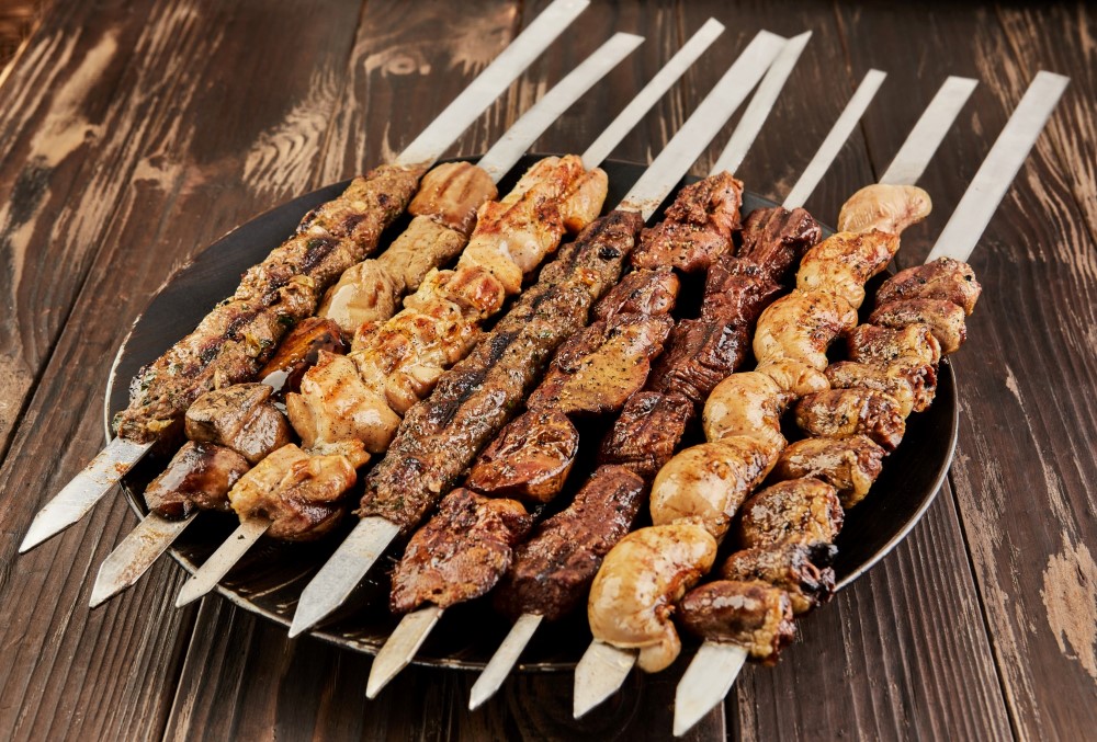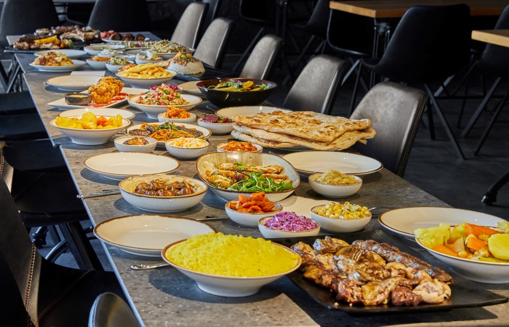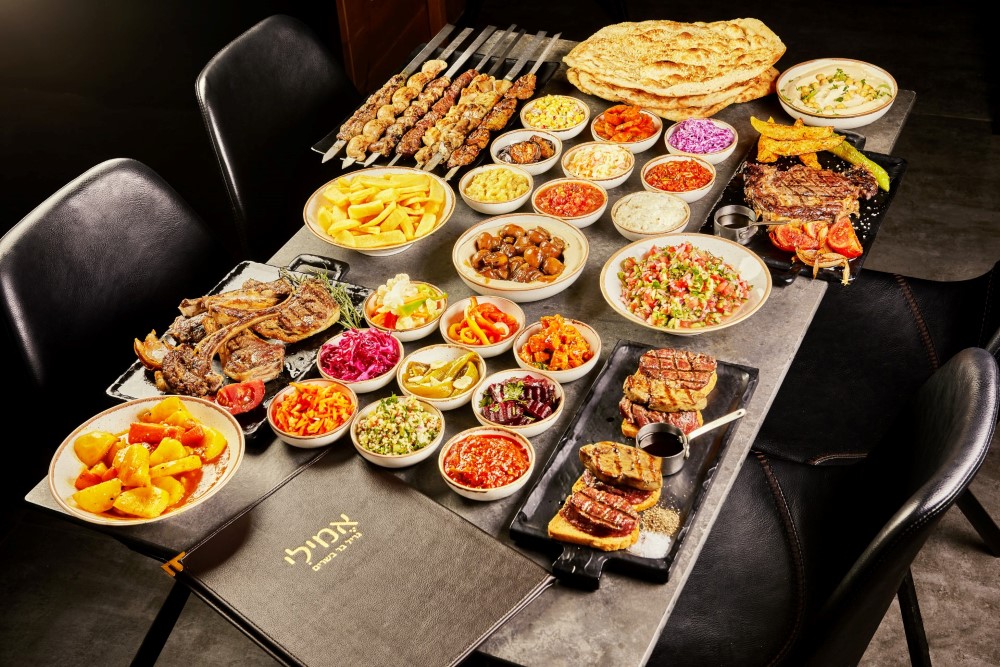 תפריט האירועים שלנו כולל לא פחות מ- 14 סלטים טריים המוגשים במילוי חופשי, שני שיפודים לכל סועד עם שתי תוספות חמות לבחירה ושתייה קלה. בסיום הארוחה, נהנים משתייה חמה ובקלאווה מתוקה מתוקה.