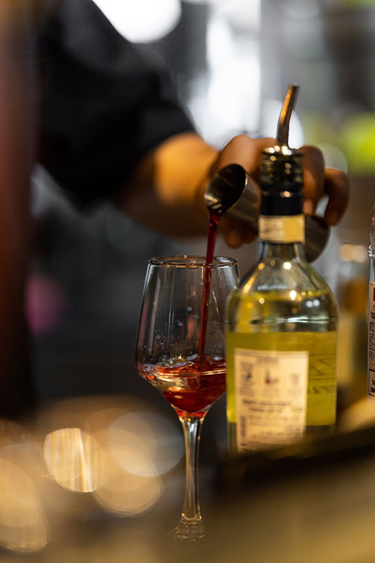 חובבי היין ימצאו פה כמאה סוגי יין שונים.