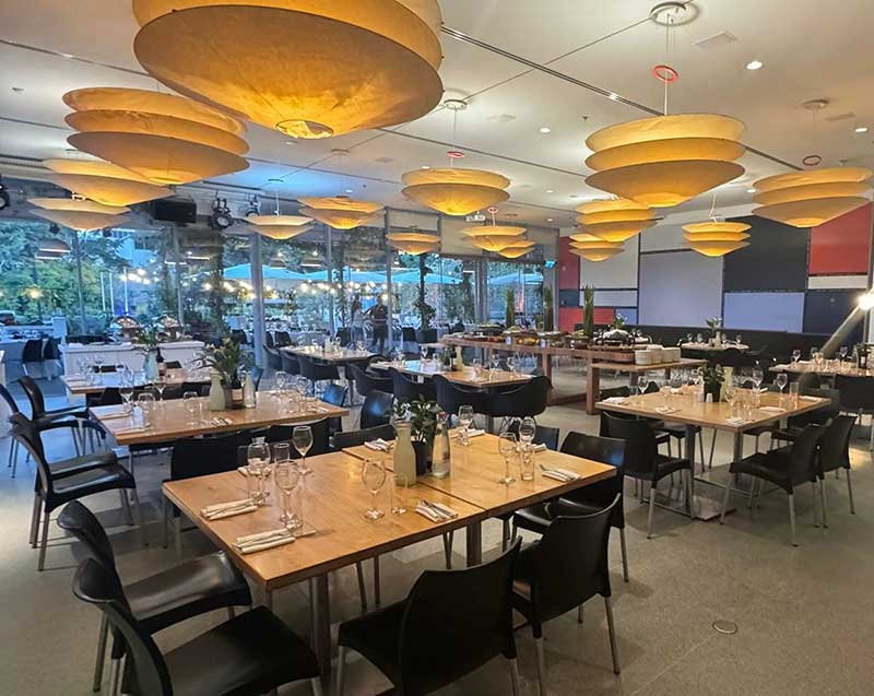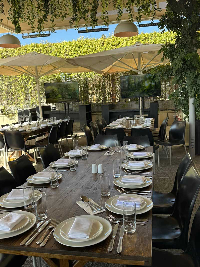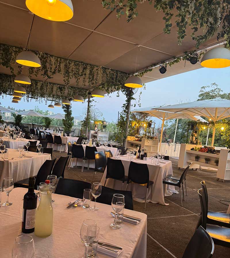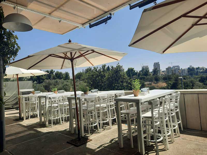 ארוחת שף לקבוצה גדולה בירושלים לאחר סיור במוזיאון או בספרייה הלאומית החדשה. למודרן נסיון עשיר באירוח אירועים עסקיים ורשמיים מכל הסוגים עם כניסה מרשימה למוזיאון, קולינריה גבוהה ונוף ירושלמי פתוח, אירוע המשדר יוקרה, וחשיבה מחוץ לקופסה. מרפסת עצי הזית הירוקה גם בחורף, מאפשרת חוויה פרטית פתוחה, מוארת ונעימה. עם שולחנות נזירים מעץ אלון.
